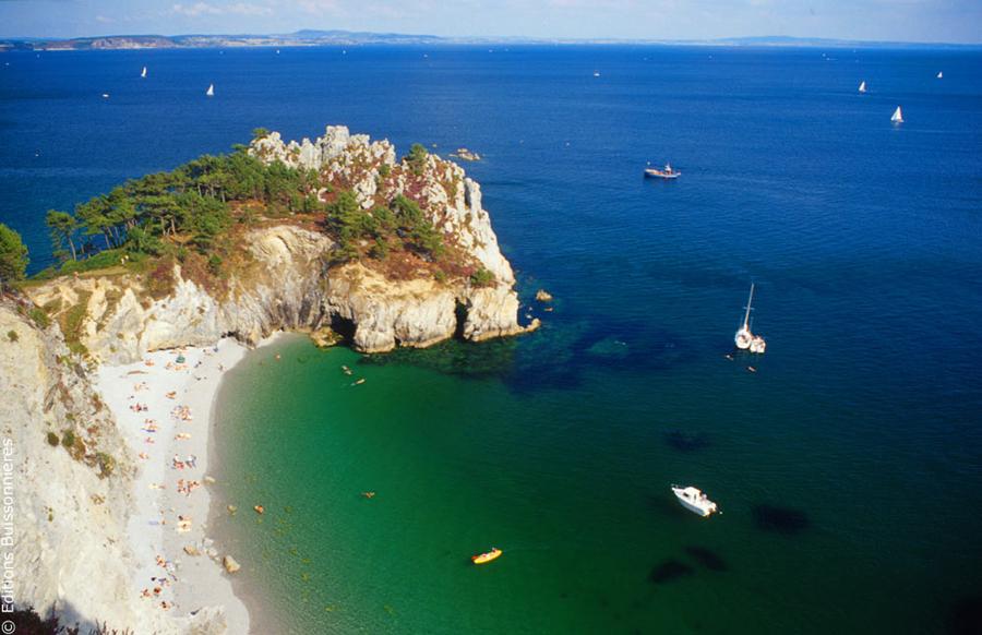À l'est, à l'entrée de la presqu'île, le Ménez-Hom est une montagne appartenant à la chaîne des Montagnes Noires. Entouré de la mer, la presqu'île est surtout appréciée pour la richesse de son paysage ; entre autres sites naturels remarquables, le cap de la Chèvre, la pointe de Pen-Hir, la pointe des Espagnols et le château de Dinan sont parmi les plus connus. (Wikipedia)